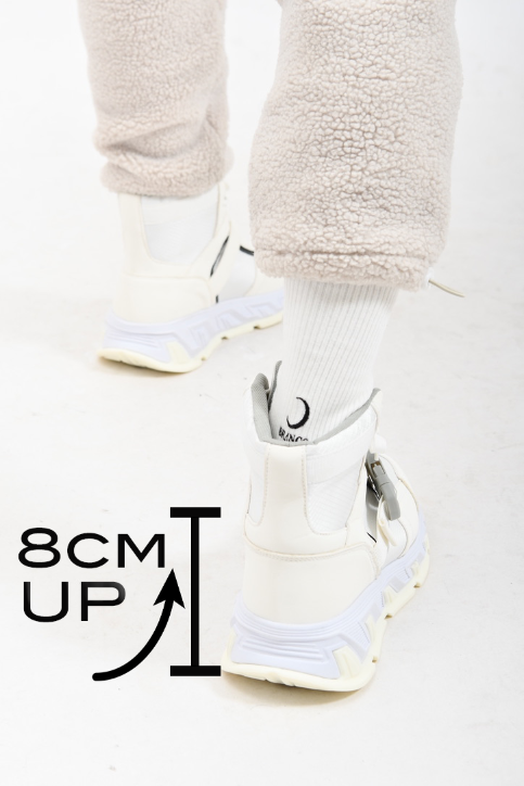 最大8cmの身長UP。誰でも黄金比スタイルが完成。あなたのお気に入りのパンツが理想の丈に変わります。8cmは見る人にギャップを感じさせない自然な高さ。安定感を保ちながら快適な歩行を可能とします。